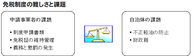 還付日の先送りや審査期間の長期化、複雑かつ、提出書類が多いなど、使用量によっては制度を利用していない企業や共同組合が非常に多いのが現状です。
